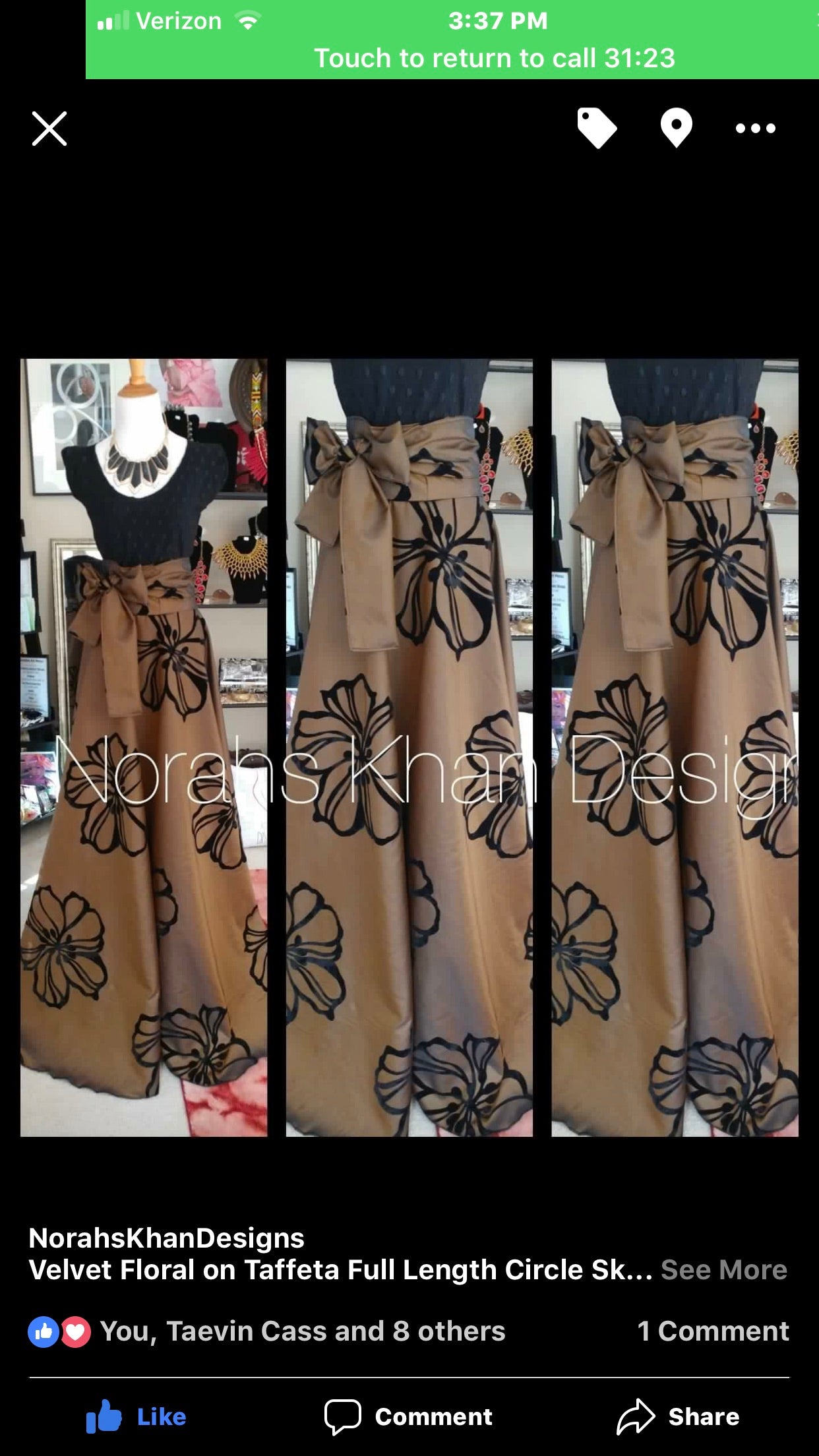 Bronze Formal Skirt has black textured Floral embellishments on high quality taffeta. Full circle hemline. Elegance in motion. Fit Size Medium- Large.