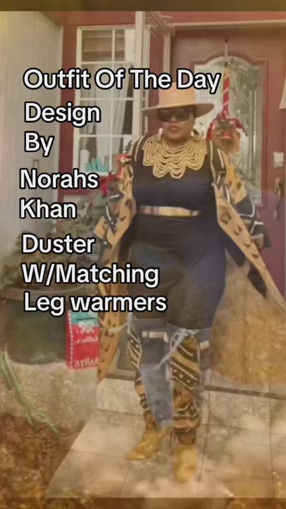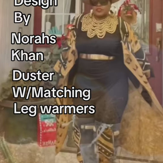 Norahs Khan Design Leg Warmers are custom designed with a fusion of art and sassy style. Unique designs for the individual that dares to be distinctive. Can be styled to cover ankle boots or tall boots. Various designs made upon request. Consult with Designer for special requests. Wearable Art designs may include denim, African fabrics, kente, mudcloth, cottons, knits. Sold by pairs. Allow time to make upon request.Notifications emailed when designs are shipped with tracking information. Pick up arrangements are accepted in advance. ALL SALES FINAL.