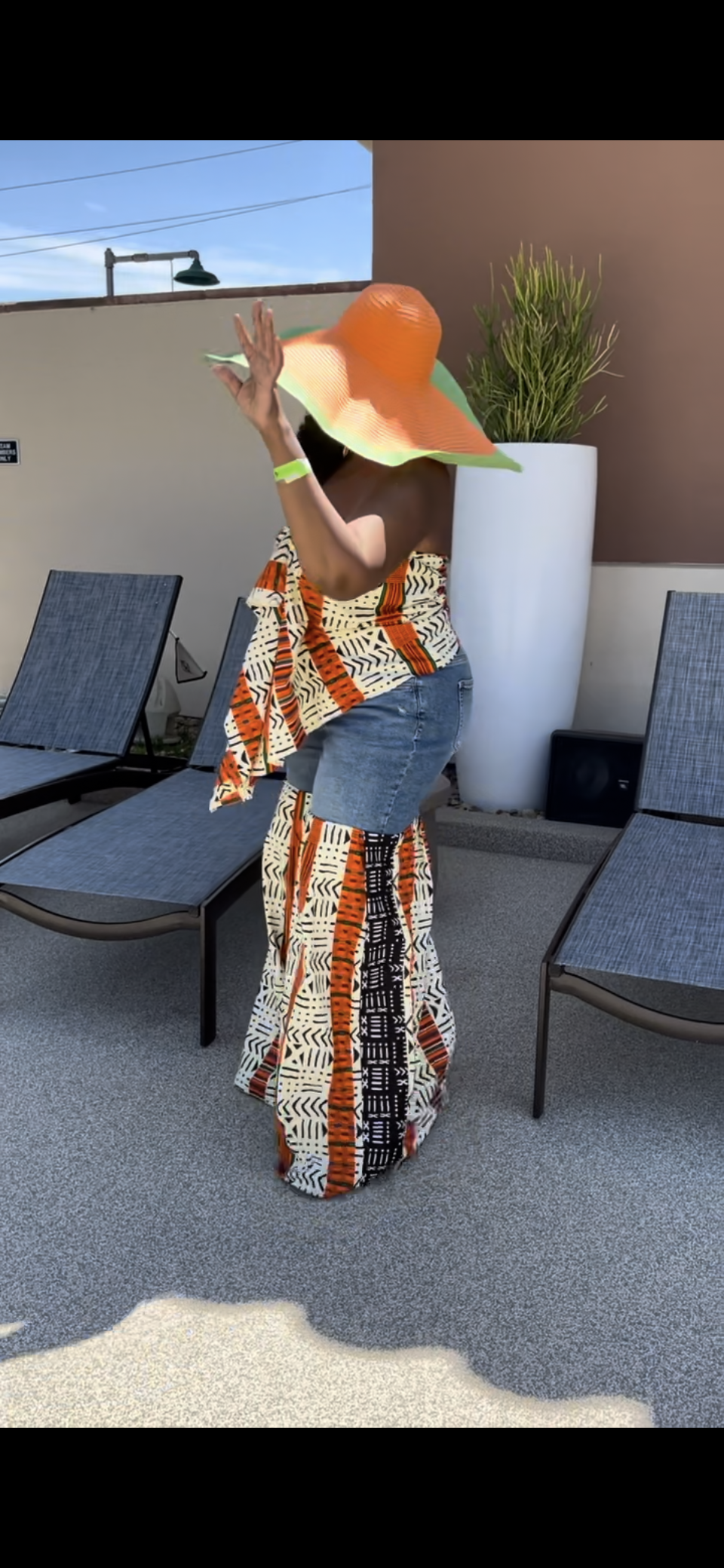 Denim Jeans restyled with Ankara fabric paired with matching top. Top is extra long fabric you can tie around upper half of your body as seen in picture to create the finished touch to your ensemble. Fabric colors and print patterns vary based on availability at time order is requested. Confirm fabric availability with Designer in advance. Made upon request. Allow design time and shipping time for completion. Rush order accepted requires rush fees TBD.